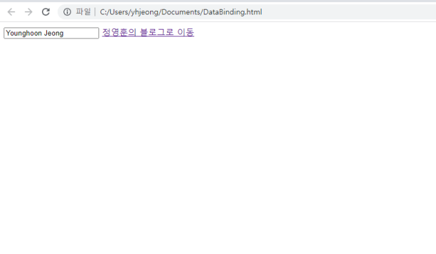 그런데 개발자는 DB 단에서 혹은 사용자가 보고 싶은 데이터를 가져와서 input 태그에 표시해 주고 싶다. 이때, 사용자가 보고 싶은 데이터를 input 태그에 넣어주는 것, 즉 연결해 주는 것을 데이터 바인딩이라고 한다.