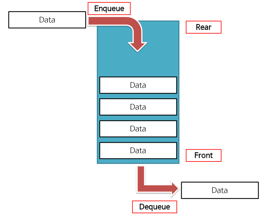 - 자료가 들어오는 부분을 rear, 자료가 삭제되어 나가는 부분을 front라고 한다.