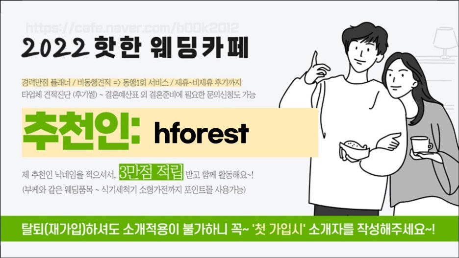 물론 신부가 대부분의 준비를 하고 있다.. 하루의 절반 이상을 회사에 오롯이 쓰고, 저녁에 퇴근해서 웨딩 카페 글을 쓰는 것 정도 도와주는 나는 신부에게 미안한 마음이 크다...