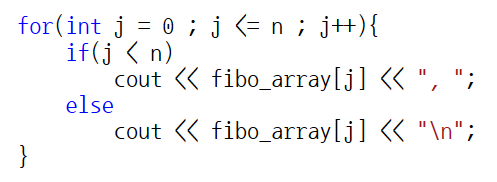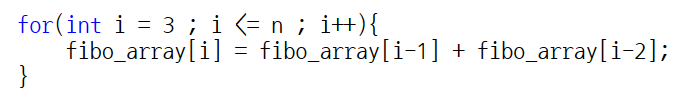ⓖ fibo_array[3]부터는 for문을 사용하여 채워나가도록 하겠습니다.