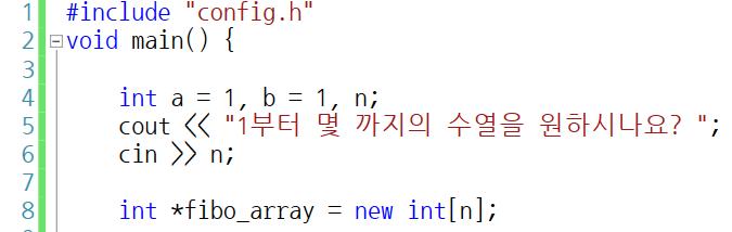 ⓒ 그리고 각 항을 저장할 배열 'fibo_array'를 선언하고,