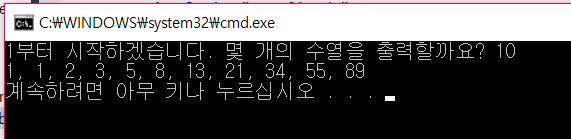 실행 결과 10개의 수열이 정상적으로 출력되는 것을 확인할 수 있습니다.