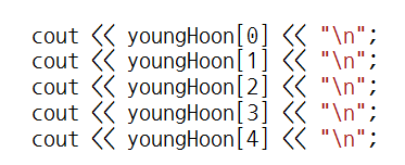먼저 배열은 위에서 이미 선언한 'youngHoon'이라는 배열을 사용하겠습니다.