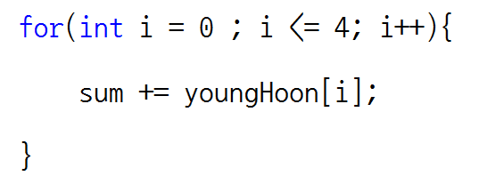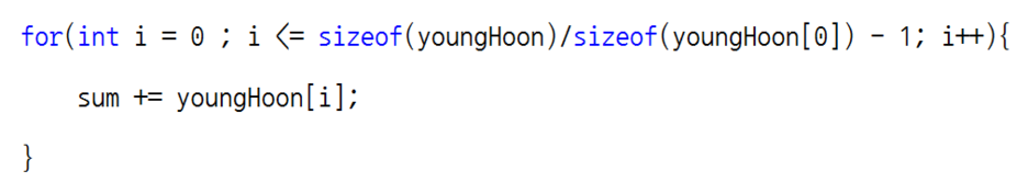 여기서 i를 'sizeof(youngHoon)/sizeof(youngHoon[0]) - 1'까지 반복하는 이유는