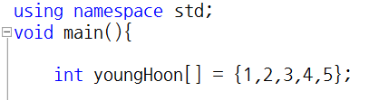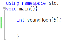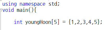 다음 그림은 정수형 변수 5개를 원소를 갖는 youngHoon이라는 배열을 선언한 것입니다.