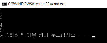 그 결과, 1, 2, 3, 4, 5가 정상적으로 출력됩니다.