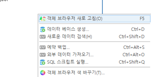 객체 브라우저에서 마우스 오른쪽 버튼 클릭 후 '객체 브라우저 새로 고침'을 눌러주셔도 됩니다.