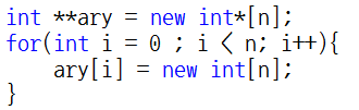 입력 받은 n 크기만큼의 2차원 배열을 동적으로 할당해보겠습니다.