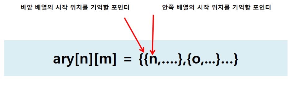먼저 이중 포인터로 배열 ary를 선언 후, 바깥 배열의 크기부터 할당하겠습니다.