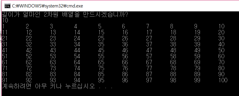 그래서 길이가 10인 2차원 배열을 입력해보았습니다.