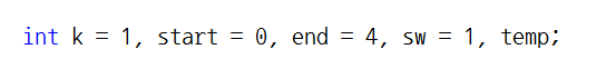 * temp = start와 end의 값이 뒤바뀔 때 상호 값의 스와핑을 위해 저장할 임의 변수