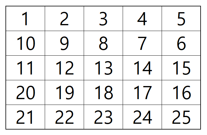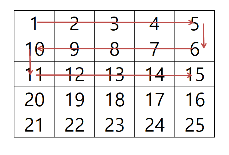 자세히 보시면, 숫자가 증가하는 방향이 'ㄹ'자 형태를 띕니다.