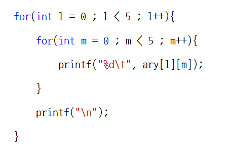 바깥쪽 for문은 5행을 차례대로 입력하는 역할을 담당하며,