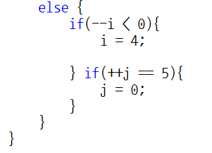 열의 경우 1증가 시켰을 때, 5가 된다면 j를 0으로 세팅해야 합니다.
