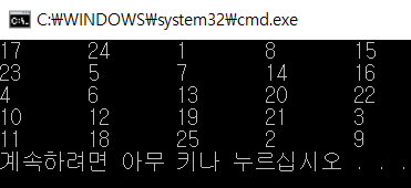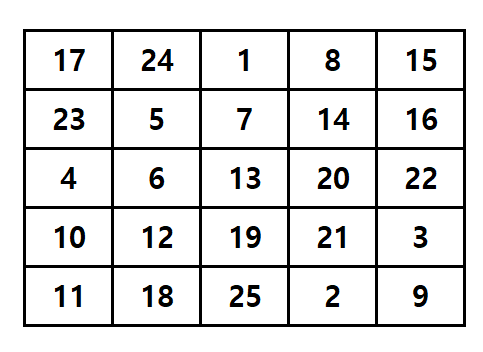 5 * 5 마방진이 출력됩니다.