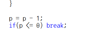 이러한 과정이 p가 0 이하일 때까지 반복된다면, while 구문의 반복은 끝이나게 됩니다.