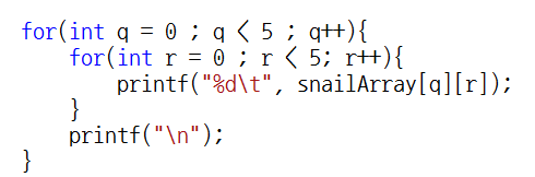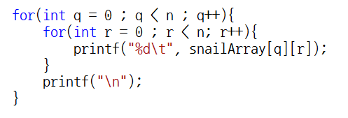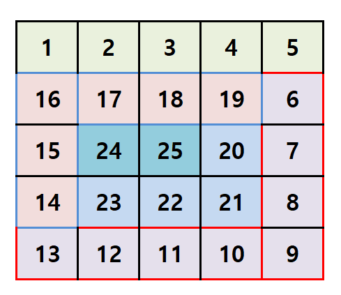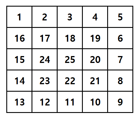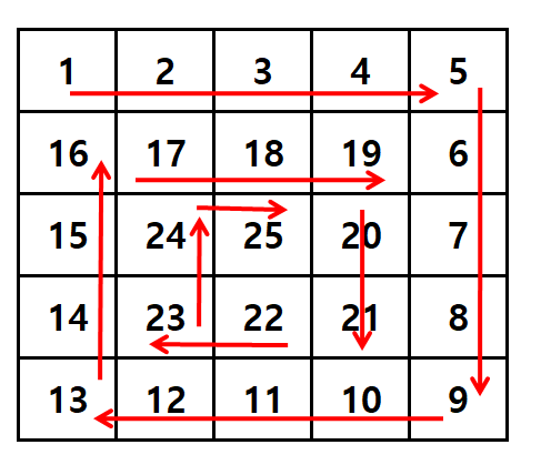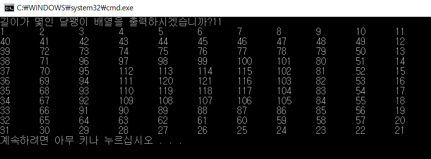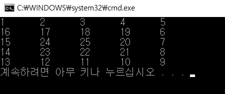 이제 달팽이 배열을 출력해보도록 하겠습니다.