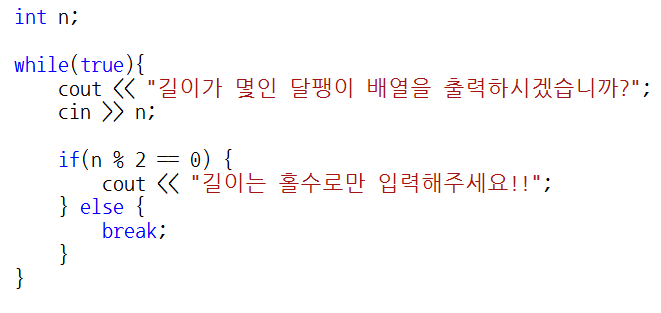 달팽이 배열 역시 홀수로만 입력 받겠습니다.