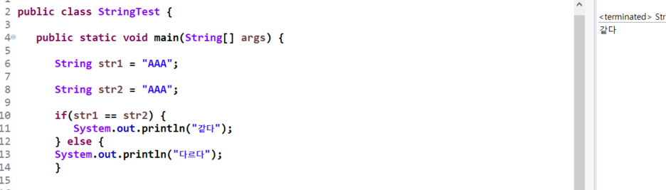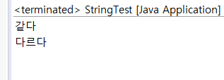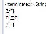 equals 메소드를 사용한 결과, '같다'라고 출력되는 것을 확인할 수 있습니다.