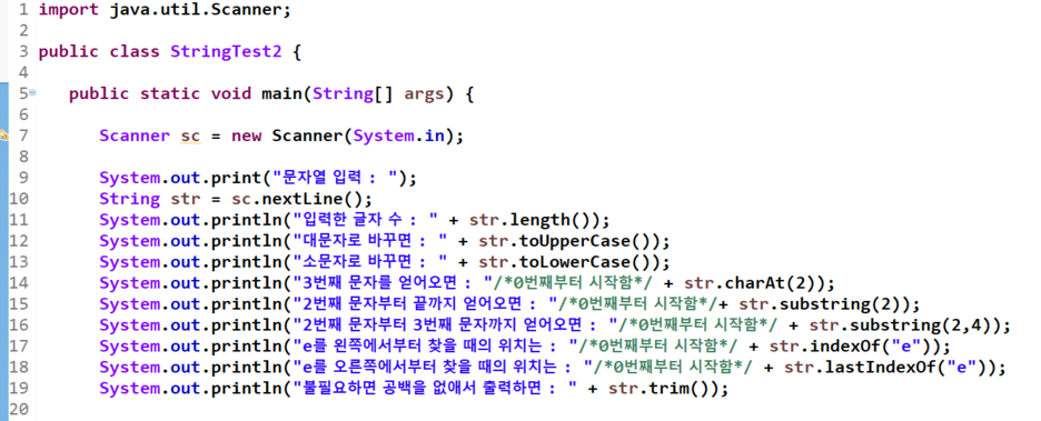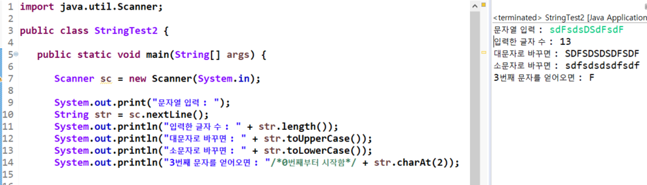 - 문자열의 맨 처음 문자는 0번째 문자임을 주의한다.