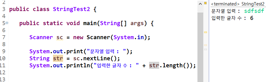 ② 줄 단위의 문자열은 str이라는 변수에 저장합니다.
