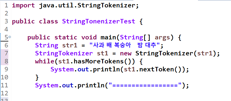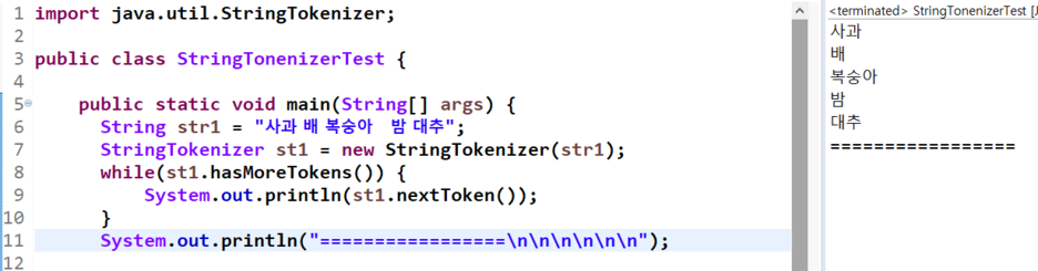 지금부터 "StringTokenizer"이라는 클래스와