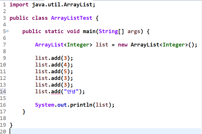 ArrayList에 새로운 요소를 추가할 때는 '리스트명.add(요소 값)'으로 추가하면 됩니다.