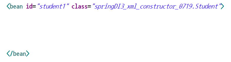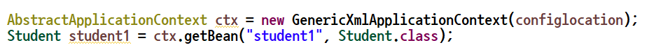 예를 들어, student 클래스의 객체 student1을 생성하는 bean은 다음과 같이 만듭니다.