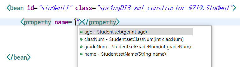 스프링에서 setter의 역할을 하는 것은 <property></property> 태그입니다.