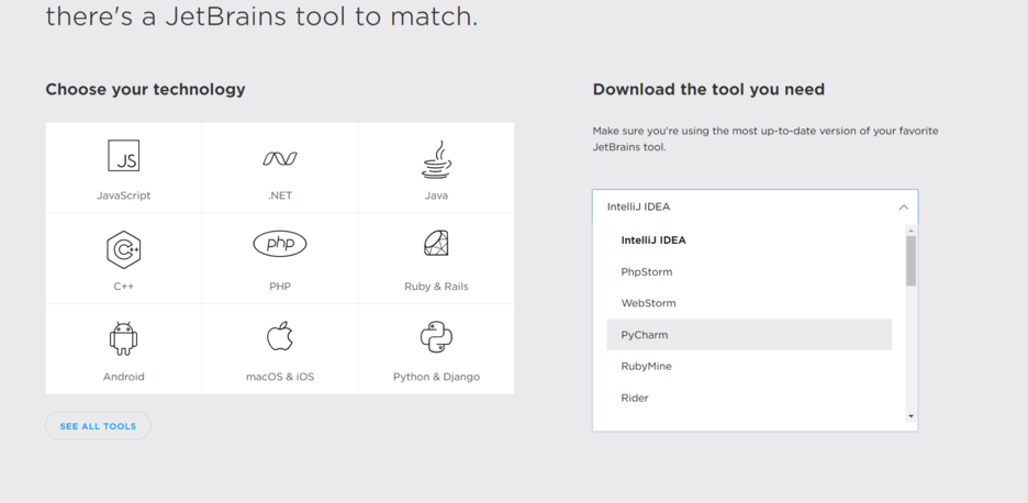 다음과 같이 'Download the tool you need'라는 메뉴에 리스트가 나타나고,