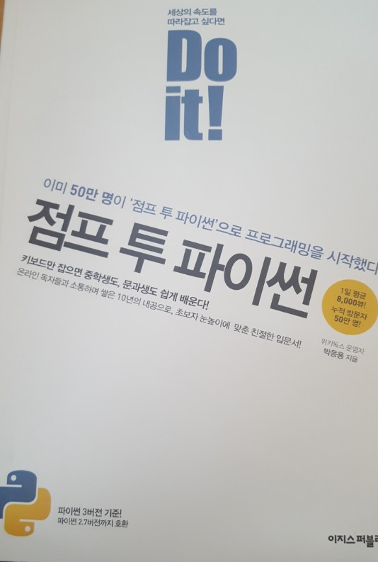 그리고 저만의 학습서로 박응용 작가님의 '점프 투 파이썬'을 구입하였습니다 : )