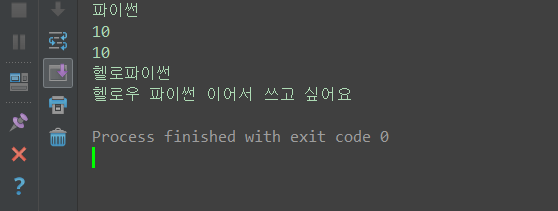 파이참에서도 결과 값이 어떻게 도출되는지 실시간으로 확인 가능합니다.