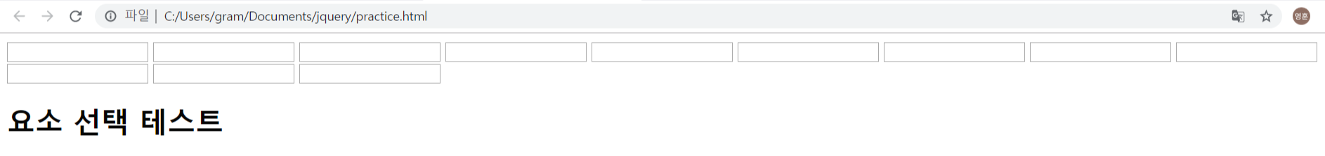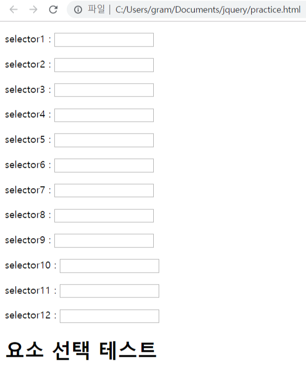 | 5 | 그룹 선택자 | 사용자가 선택한 요소들을 모두 가지고 온다. | $("요소명1, 요소명2, 요소명3") |