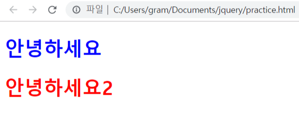 'st1' 클래스를 사용하는 '안녕하세요'는 파란색을, 'st2' 클래스를 사용하는 '안녕하세요2'는 빨간색을 적용합니다.