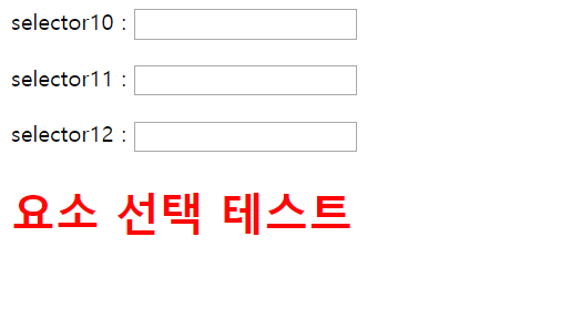 h1 요소에 포함된 '요소 선택 테스트'라는 텍스트가 빨간색으로 적용되었습니다.
