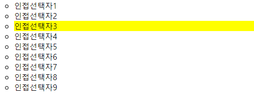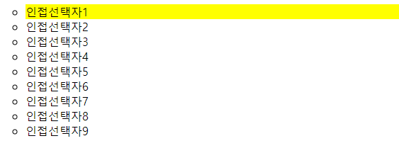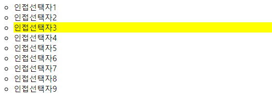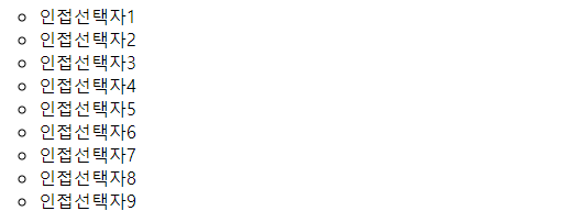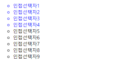 인접관계 선택자는 선택한 요소의 인접 요소들을 가져오는 기능을 합니다.