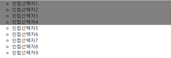 실행 결과 인접선택자5, 6, 7, 8에만 잘 적용되었습니다.
