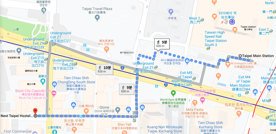 지도에서 보시다시피 타이베이 메인 스테이션과 시먼딩과의 접근성이 매우 좋습니다.