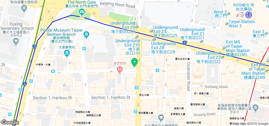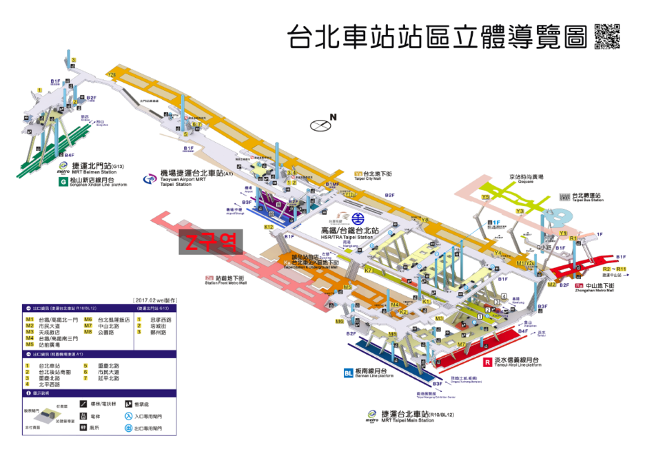 아래는 타이베이 메인 스테이션 약도인데, Z구역의 10번 출입구(Z10)로 나오시면 됩니다.