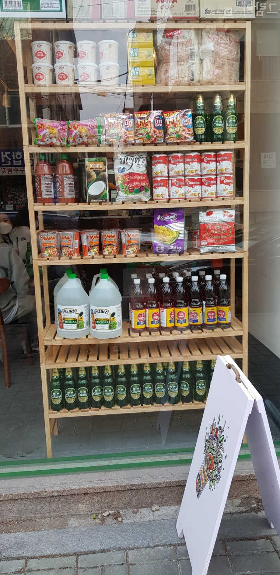 아래 사진처럼 태국 식품들이 진열되어 있다. 20년 전, 어머니가 장애인복지시설에서 컴퓨터 강사로 봉사하고 계실 때, 몸이 불편하신 분들과 함께 봉사 겸 태국 여행을 다녀온 적이 있었다. 당시에 먹었던 식품에 대한 기억은 흐릿하지만, 분위기와 향수가 느껴졌다(너무 오래돼서 안 믿으실 수도...ㅋㅋ).