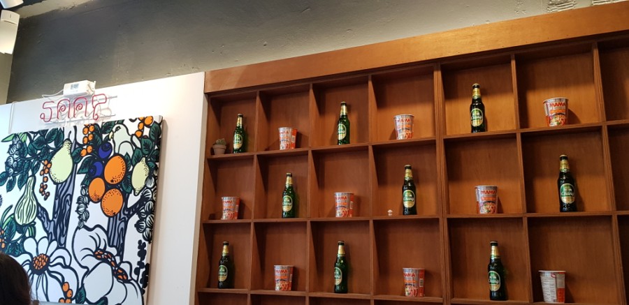 벽은 창맥주 + 마마 누들로 장식되어 있다. 완연한 태국 분위기를 풍겨주셨던 사장님의 인테리어 센스.