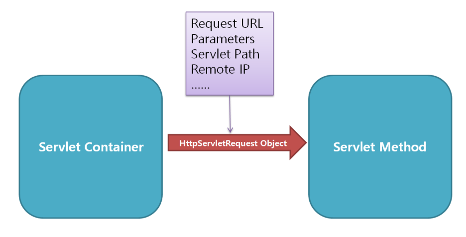 → 서블릿 컨테이너는 웹 서버로부터 들어온 클라이언트의 요청을 넘겨받아, HttpServletRequest 인터페이스의 객체를 생성한다. 이 객체에 클라이언트의 요청사항들을 담아 서블릿 서비스 메서드에 전달하므로, 클라이언트의 요청에 관한 많은 정보를 내장시키고 있다.